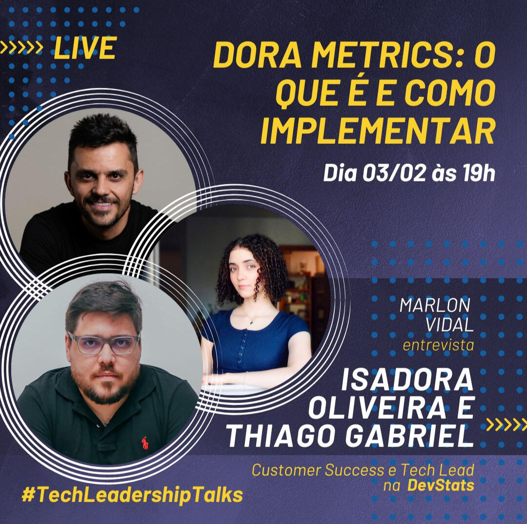 Irei conversar com a Isadora Oliveira e o Thiago Gabriel, Customer Success e Tech Lead respectivamente na DevStats, onde iremos abordar os conceitos do DORA Metrics, como você pode construir esses indicadores no seu time e insights importantes que podem ser tirados a partir de análises de cases reais de mercado.